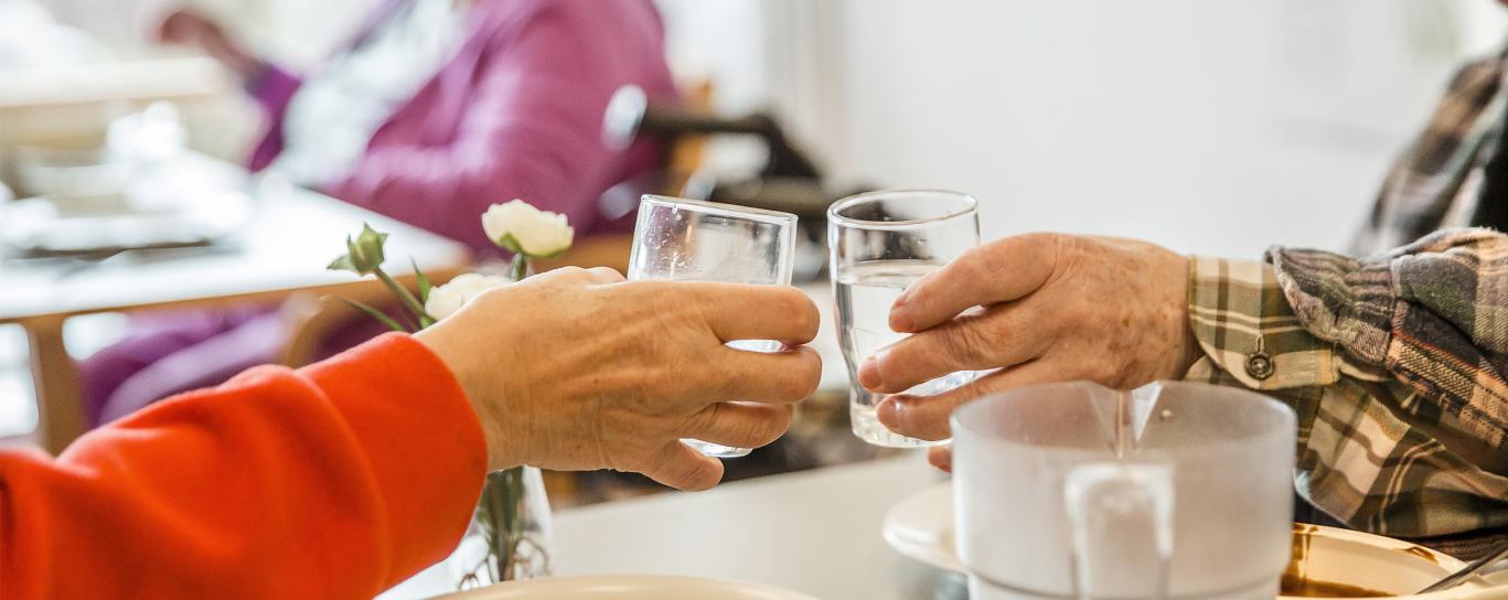Mange beboere vælger at spise sammen, da det er rigtig hyggeligt. Du bestemmer selv, om du vil spise sammen med de andre beboere i vores fælleslokaler, eller om du vil spise din mad i din egen bolig.